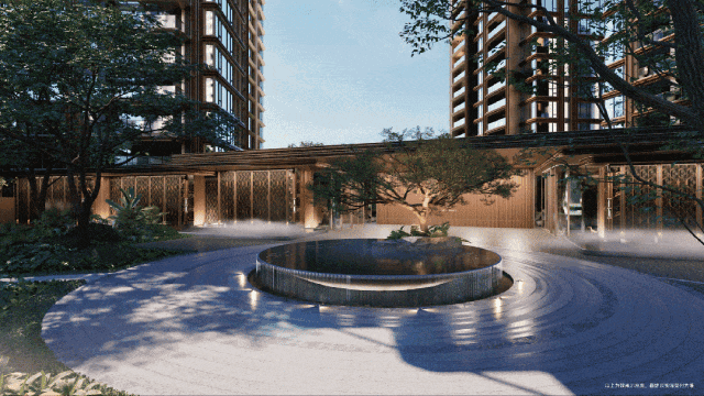 金茂璞元的社区公区品质堪称“美术馆级别”。主入口采用“悠谷式”设计,业主需穿过城市森林才能抵达,营造“隐奢归家”的仪式感;