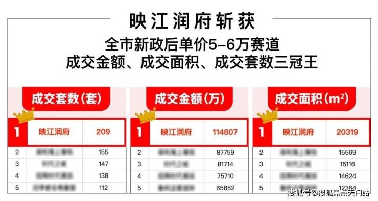据网上房地产网签数据显示,5月28日至今,在单价5-6万赛道,闵行滨江的 映江润府项目拿下了 成交套数、成交金额、成交面积三冠王的宝座,全市级红盘之名当之无愧!