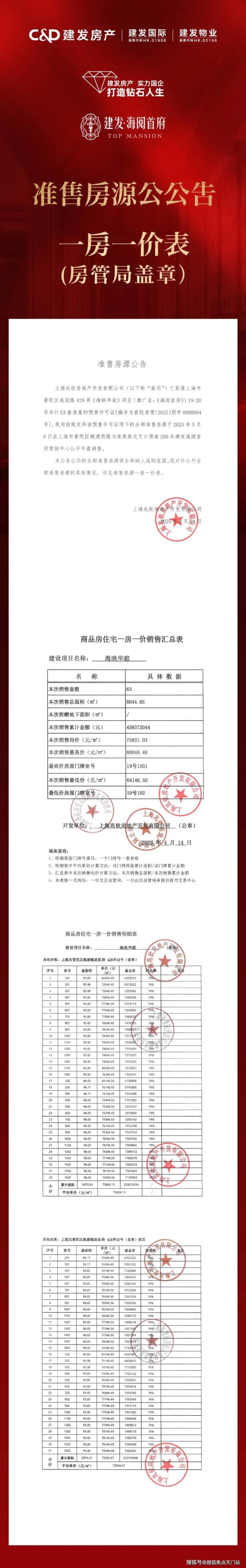 最新消息:普陀桃浦「建发海阅首府」在售中!在售建面约96-103㎡三房,总价约723-1027万!