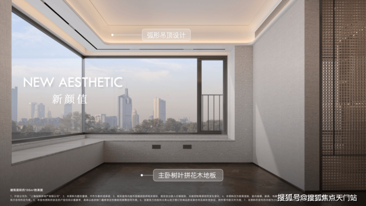 项目大量使用奢石设计,客厅四边弧形天花、主卧树叶拼花地板、精致优雅的骨骼线设计,都是开发商花费更大成本和耗材去呈现更美的视觉体验。