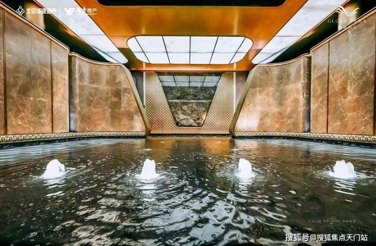 约百米的先锋门庭,延展的尺度、极具序列感与艺术性的设计语言,构成了归家的第一重盛大仪式,在夜色与灯光的映衬下,显露出沉稳而磅礴的气场。范思哲黑奢石水景静静倒映着光影,像一条深邃的星河,引领你向内探寻。