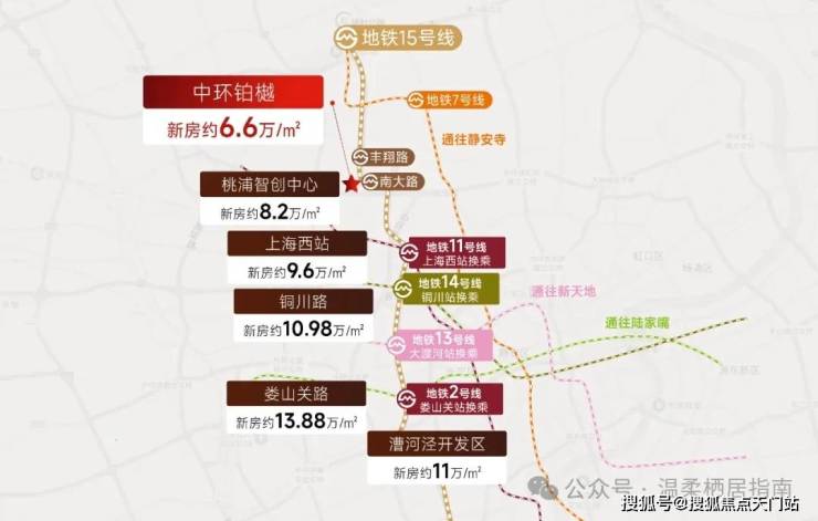 中环铂樾坐拥 15号线南大路站(直线约300米),真正实现“地铁到家”的便捷生活。从这里出发, 4 站畅达 上海西站 ( 新房均价 9 万 + /㎡ )、 5 站轻松抵达 铜川路 ( 新房均价 10 万 + /㎡ ) 、 9 站直达 娄山关路 ( 新房均价 13 万 + /㎡ ),轻松串联城市核心板块。此外, 15号线更可快速换乘 2/7 / 11/ 13 /14 号线,无缝衔接大宁、虹口、陆家嘴等繁华商圈,商务出行、休闲娱乐皆高效无忧。