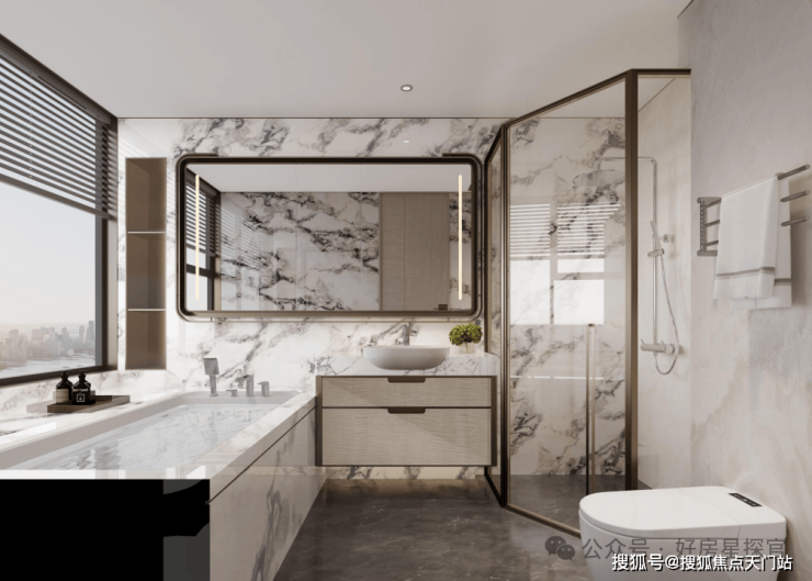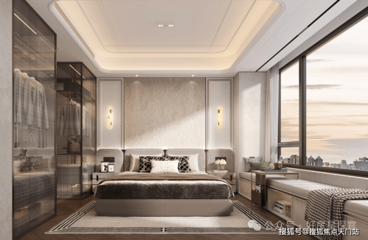 同时,南北两个房间以及主卫均为270°转角飘窗(1-2层除外),主卧套间功能齐全——独立4件套卫浴、化妆台、步入衣帽间,尊崇感与舒适度拉满。