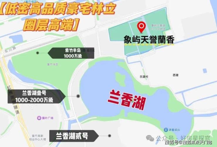 首先,这里本身就是高净值富人的聚集地,圈层纯粹。围绕兰香湖打造的兰香湖国际社区,汇聚紫竹半岛、兰香湖壹号、兰香湖贰号等多座低密高品质豪宅。