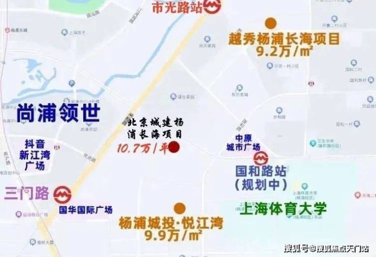 比如年初开盘的新房杨浦城投悦江湾单价9.9万/平,杨浦长海新地块(北京城建竞得)联动价10.7万/平;