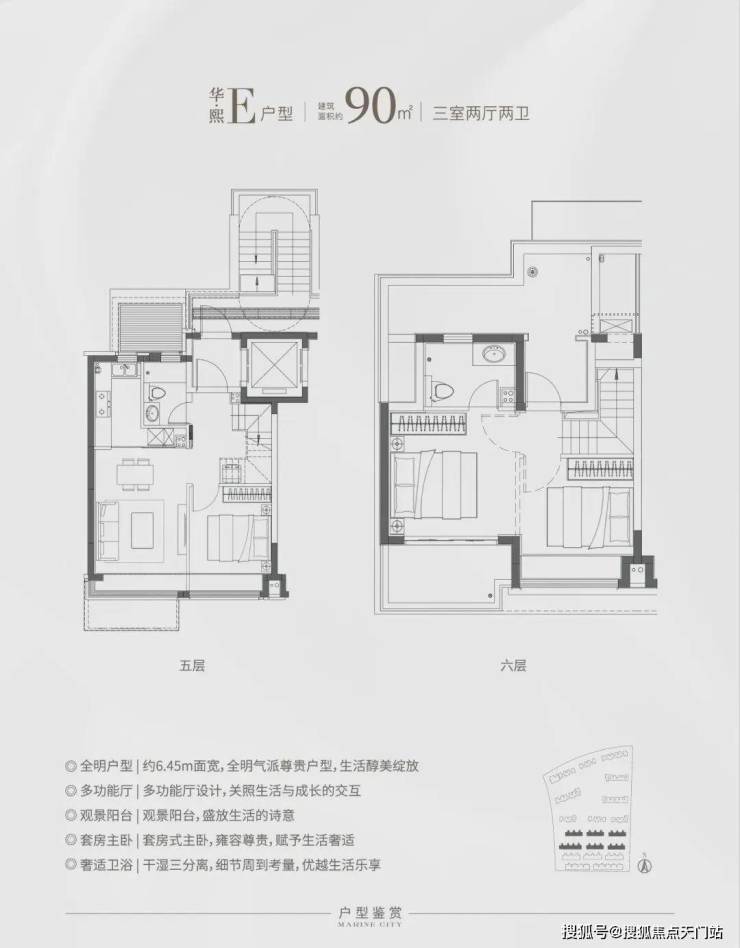 华发还有目前松江比较稀缺的叠加房源,分为六层叠加和四层叠加。主力户型建面约90-133㎡,特别是这个E户型,建面仅约90㎡,对于想住叠加但预算有限的购房者来说,面宽约6.45米,上下动静分离带,是个不错的选择!