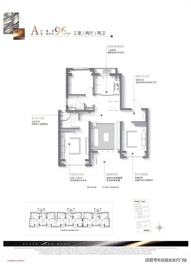 建面约96㎡精质三房,一步到位舒适人居:该户型方正格局、南北通透无连廊,既容纳二人世界的浪漫,也可将三口之家的幸福一并珍藏。