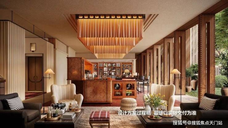 会所由全球顶奢酒店设计领域的 标杆——CCD香港郑中设计事务所执笔。 目前看到的效果图,体现出一股醇正的老钱世家风,设计品位远超市场同类豪宅。