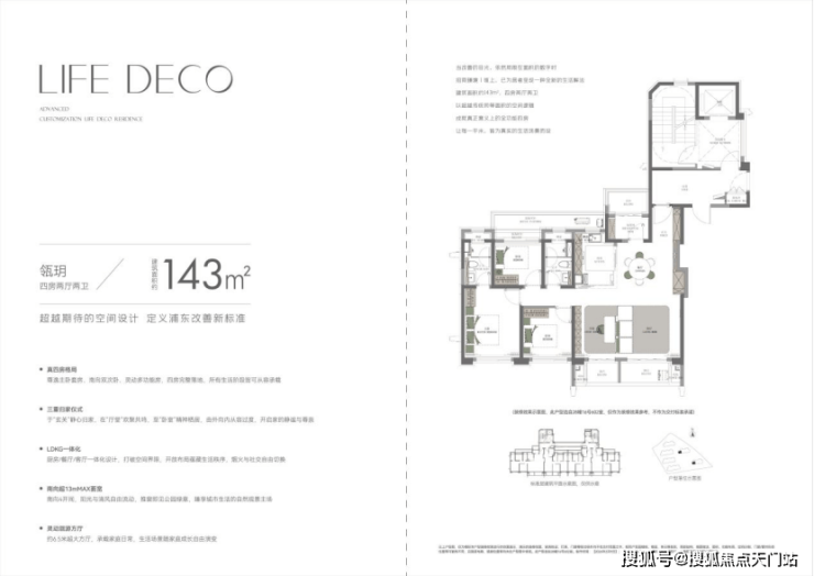 建筑面积约143㎡的户型,通过 三阳台+多飘窗+可创变空间 的组合设计,硬生生做出了市面上170㎡+大平层的实际使用面积。