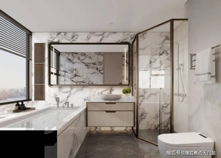 同时,南北两个房间以及主卫 均为270°转角飘窗 (1-2层除外), 主卧套间约21㎡, 3.9米的超大面宽,功能齐全——独立4件套卫浴、化妆台、步入衣帽间,尊崇感与舒适度拉满。