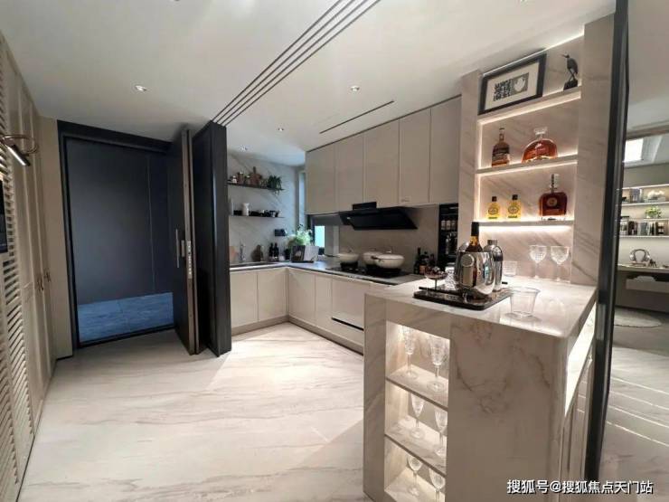 岛台一侧精致餐边柜,如果更喜欢西式就餐体验,已经可以满足小家庭的就餐。