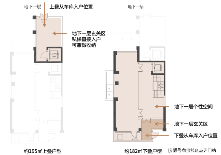 无论是上叠还是下叠,都在地下一层有独立专属门厅,且面积不小。