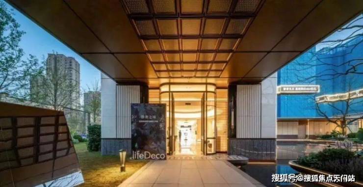 光是这个“追光”坡道就十分带感,以颇具艺术空间感的坡道尺度,香槟金色吊顶,配合 天然玻利维亚蓝奢石墙面,追光式的灯带设计,一路好似“星光大道”,高端氛围妥妥拿捏了!车道归家路, 奢选金属格栅,通过阵列排布结合防眩光灯光, 进一步烘托庄重典雅的鎏金空间氛围;通过 轻盈质感的玻璃大门进入内部,敞亮轩朗;同时还有专属等候区,如同酒店式的首层大堂,极尽礼宾仪式。 ·酒店式归家大门,仪式感满满