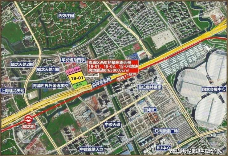2023年8月,上海二批次土拍,同济以总价133171万元成交青浦区西虹桥蟠东路西侧18-01、18-03、18-04地块,地块出让面积25495.5㎡,溢价率9.66%,楼板价30346元/㎡, 房地联动价65000元/㎡。