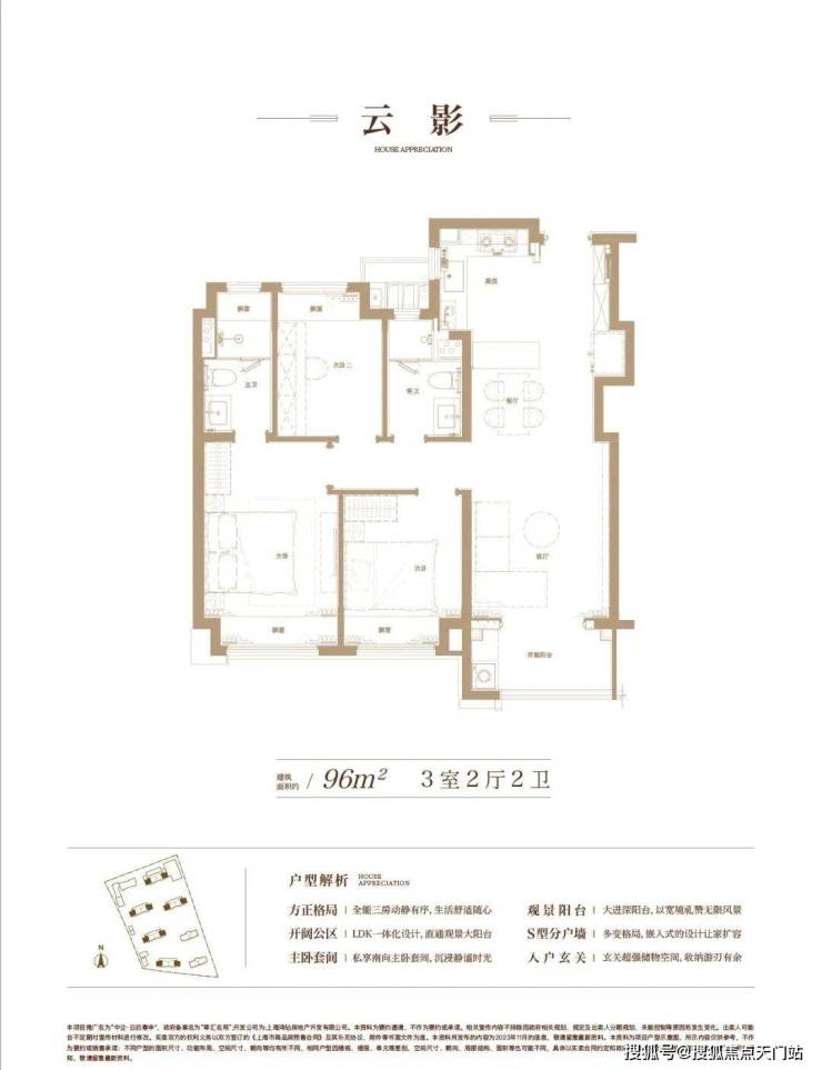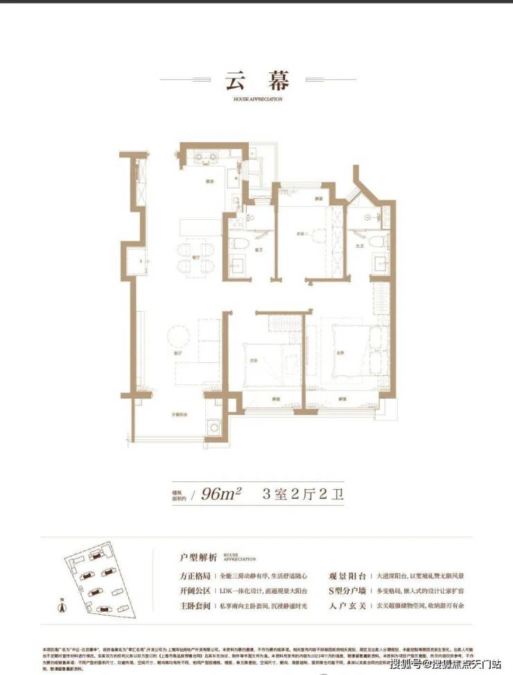 约 96㎡的 3 房 2 厅 2 卫户型,空间布局合理,每一寸空间都得到极致利用,毫无浪费。三个房间大小适中,满足家庭成员的居住需求。客厅宽敞明亮,与阳台相连,让阳光与清风肆意穿梭,为生活增添惬意与舒适。
