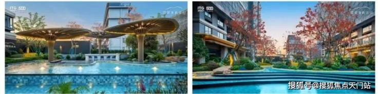 一心:建筑面积约1600㎡度假酒店中岛,打造大隐于翠的梦想桃源。中岛内拥有海岛风层叠水池、社交客厅以及庭院架空层,加上约50年树龄的乌桕点缀,共鸣多样化松弛生活场景。