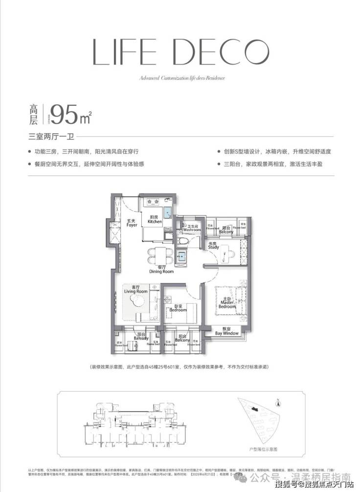 建筑面积约105㎡三房,进阶改善绝版“三阳台”户型,主力总价段约700万级,部分房源总价约650万级。