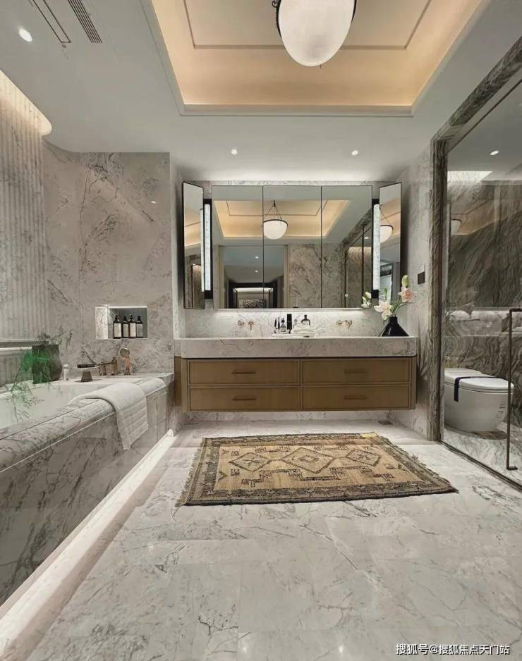 高端品质:由17家国际事务所联合设计,公区采用全进口石材铺设;室内配备嘉格纳四件套、劳芬卫浴等高端品牌洁具,装修标准对标豪宅水准。