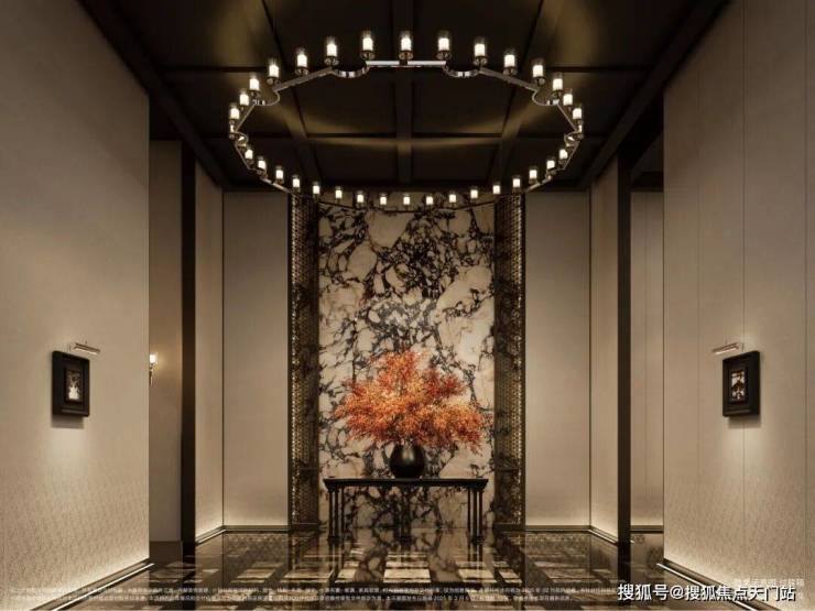 材料 选用 意大利石材,BVLGARI HOTEL大理石,铝型材塑型红, 四层金属网格 墙面以及 梧桐叶金属屏风 等, 打造独属老静安的记忆符号,高奢定制,市区豪宅调性拿捏!