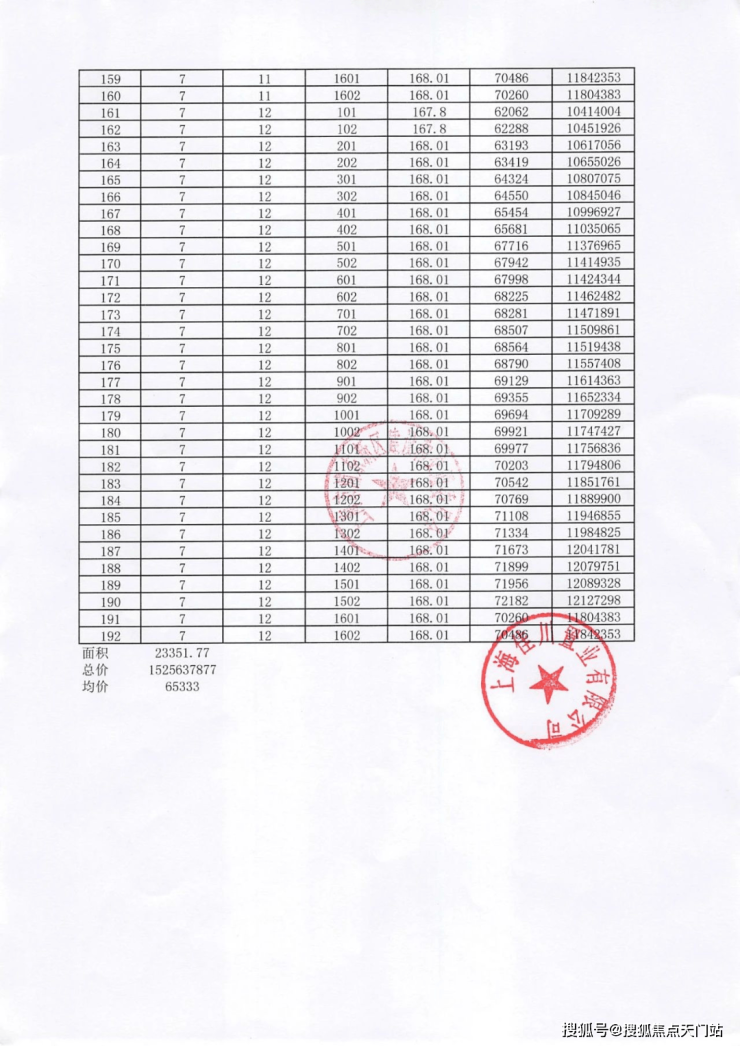 项目一房一价表▼