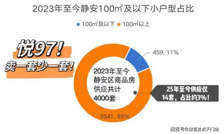 据克而瑞数据库显示,2023年至今的三年间,静安100㎡及以下户型,仅占静安供应总量的10%左右!25年至今,仅且供应了14套100㎡以下小户型,骤减至 3%, 实在太少!