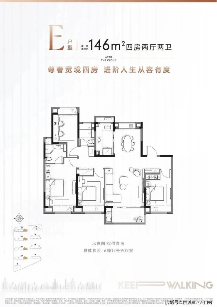 实现了4房功能性,匹配三代同堂或二胎家庭。格局上更是做到了惊人的四开间朝南+南北通透,舒适度保证在较高水准!