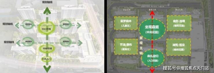 围绕“一轴·一心·四园”的景观设计理念 ,以中央花园和健康静谧的组团花园,通过现代主义建筑风格演绎,呈现充满运动活力和健康生活的公园式品质社区。