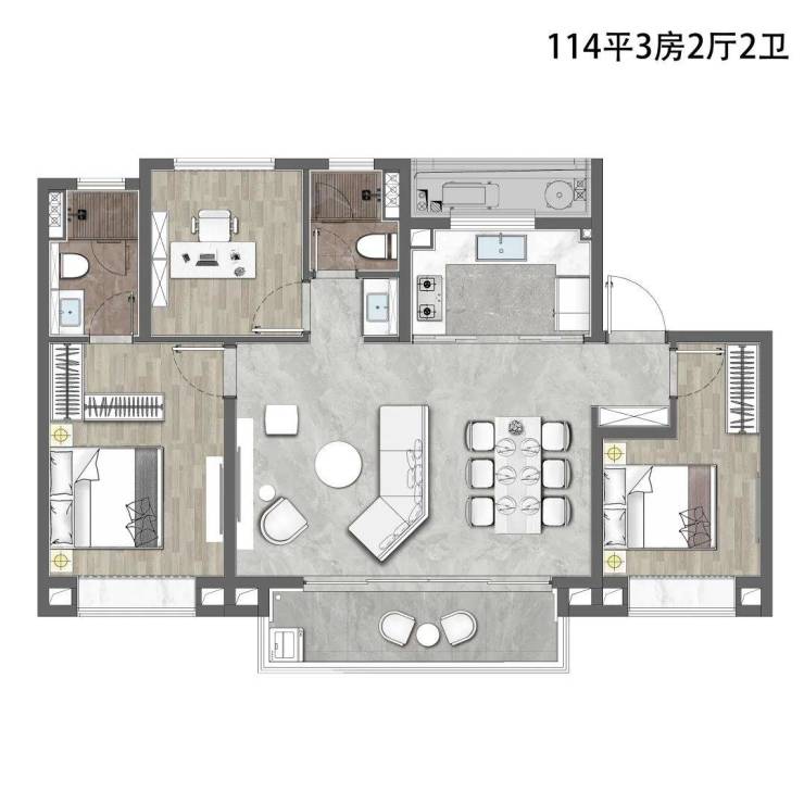 ③建面约114㎡3房2厅2卫,升级三房,更多空间!