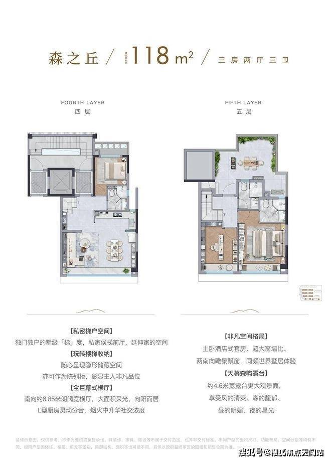 除了叠墅外,全社区仅4幢建面约102㎡沐光全景小高层,通过前瞻排布,几乎做到了户户景观无遮挡。