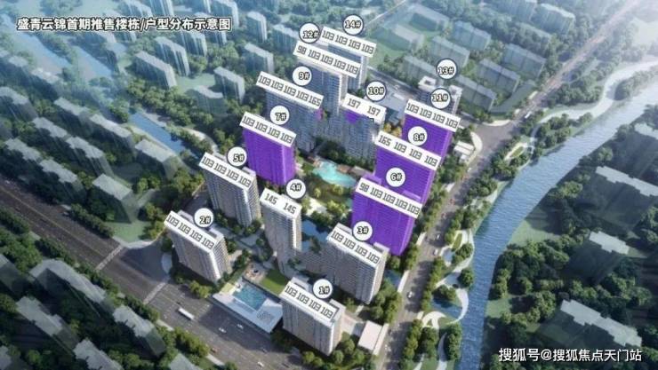 【盛青云锦】项目共14幢14-17层的小高层,共有4个面积段7个户型,建筑层高最低约3.15米。主要户型面积有103㎡、104㎡、166㎡三种面积(4个房型)