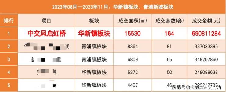 作为热销10亿+的项目,继首开之后,中交凤启虹桥再次荣登8-11月华新、青浦镇板块在售新盘中, 成交套数、成交面积、成交金额三大榜首!且远超第二名成交2倍之多!名副其实的实力选手!