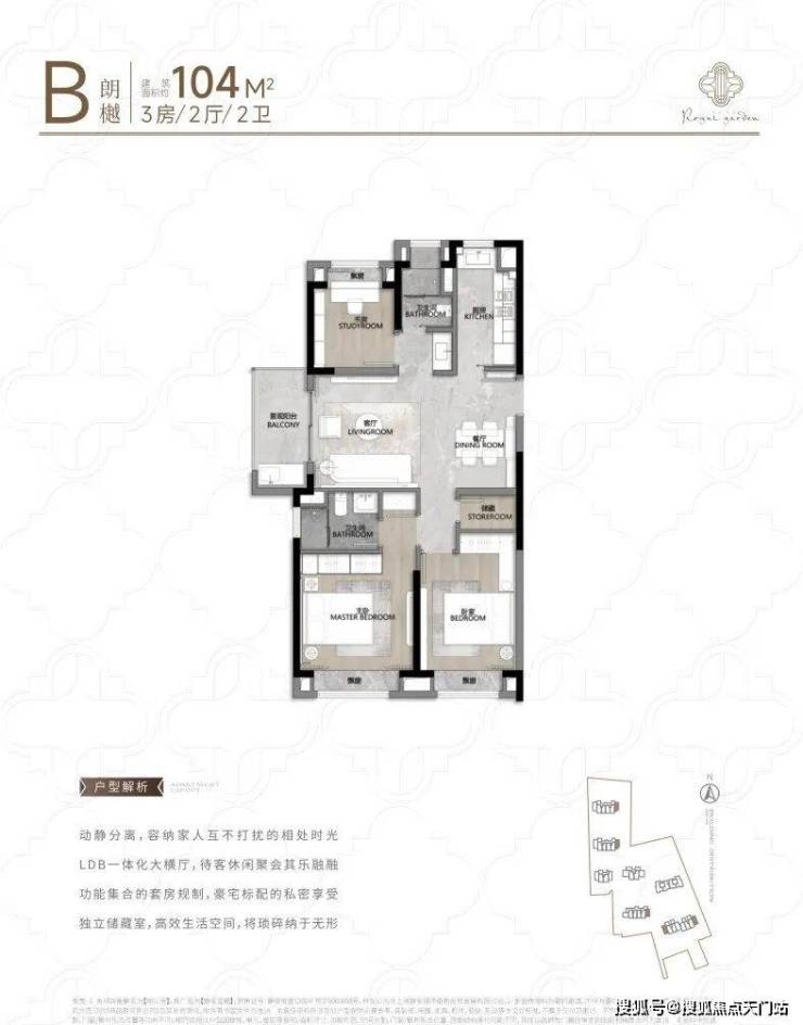 建面约104㎡王炸3房户型