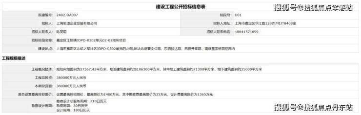 公示发布后不久,上海市建设工程交易服务中心随即发布了该地块的建设工程公开招标信息。