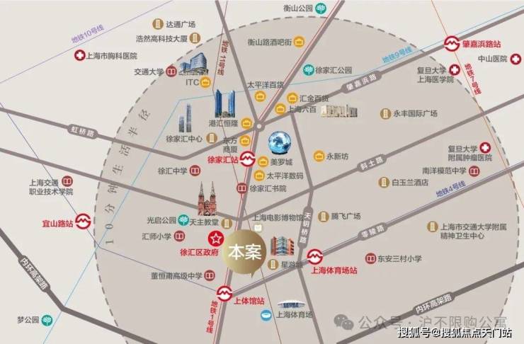 1、地段——距离徐家汇最近居住区(960米),马路对面就是万体馆及体育公园