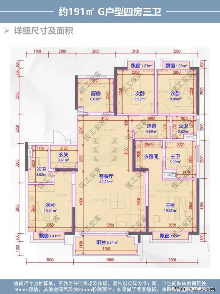 ▶G户型约191㎡ 4房2厅3卫↓