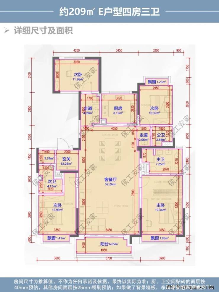 综合评价:209㎡舒适四房,南向三面宽,每个房间尺度都很舒适,客餐厅方正规整,可一体化打造,整体来说也是非常不错