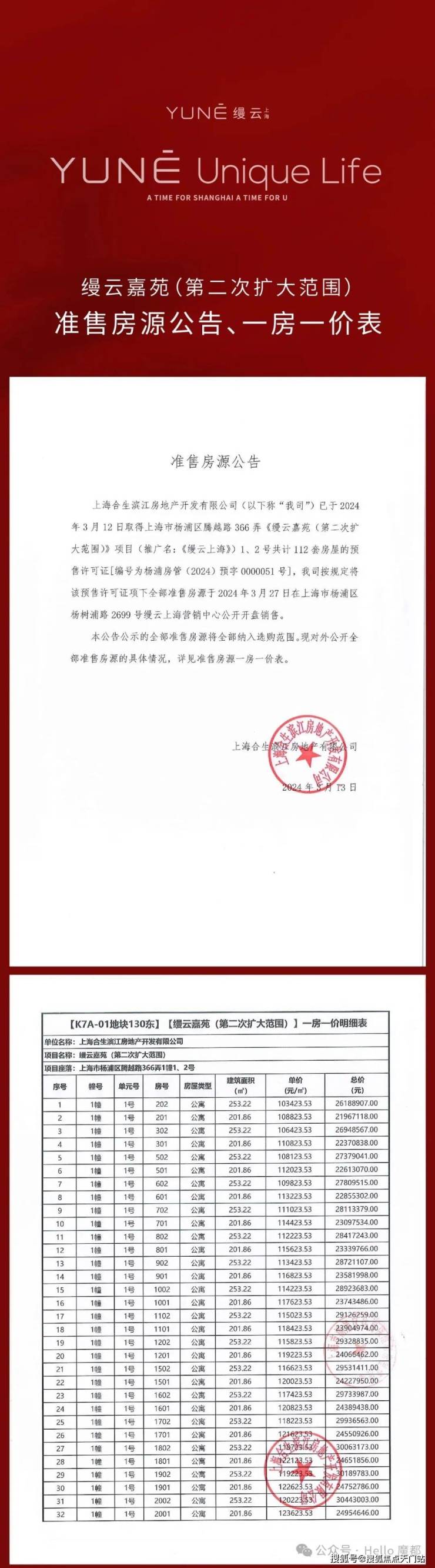 【本批一房一价表】
