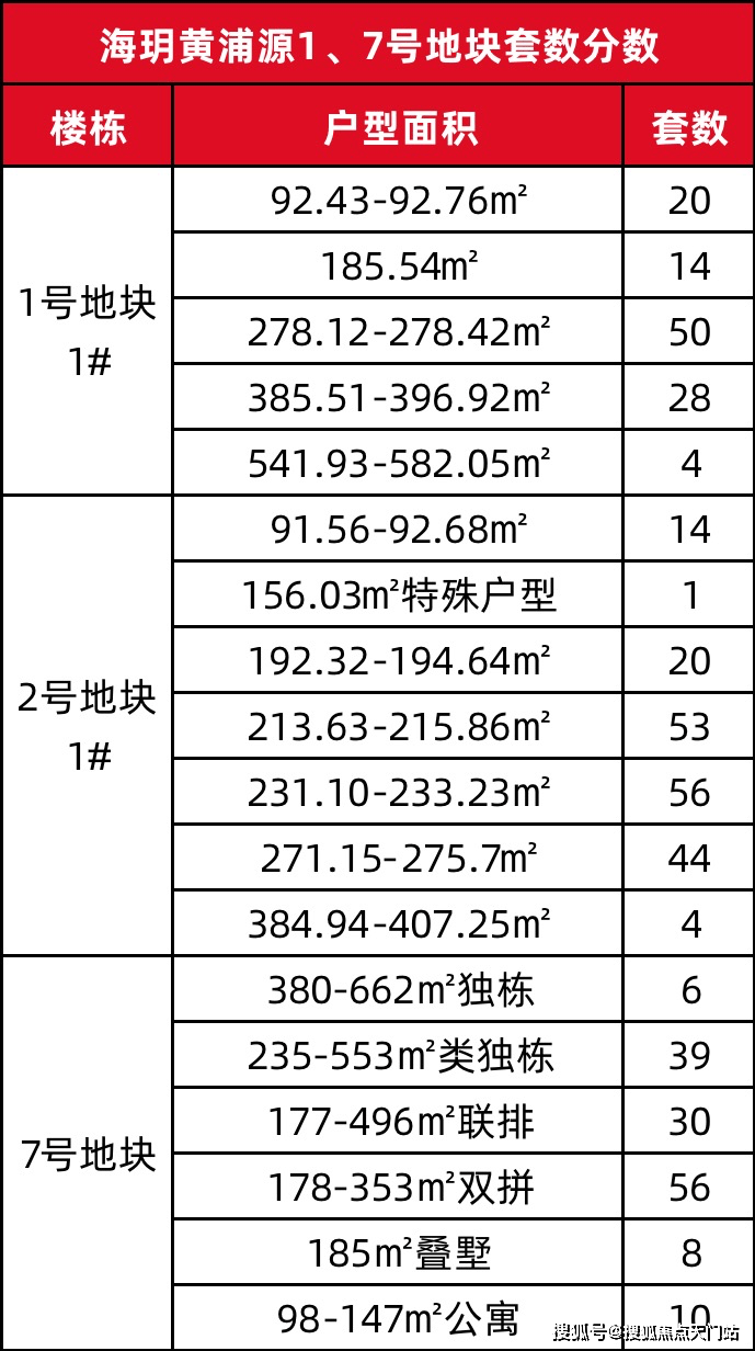 上海建工黄浦新项目「海玥黄浦源」1号地块超高层住宅、7号地块风貌别墅,大致的户型套数分布如下👇