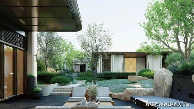 ✔一整幅与客厅等宽的风景画框:横向贯通式设计,搭配整面落地玻璃,消融了家与外部世界的界限;