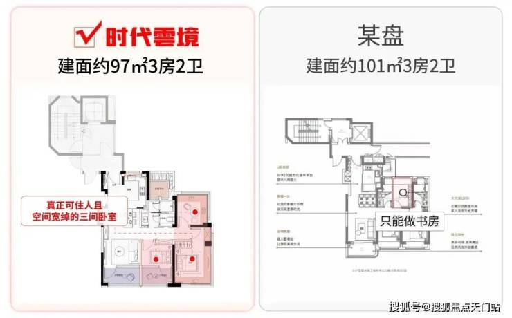 建面约97㎡的产品有两点跟大家着重提一下: