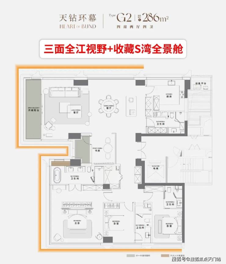 另一方面, 项目大户型 以无界平层结构和全景落地窗,享环幕视野 ,宛若一个私家的“全景景观舱”。