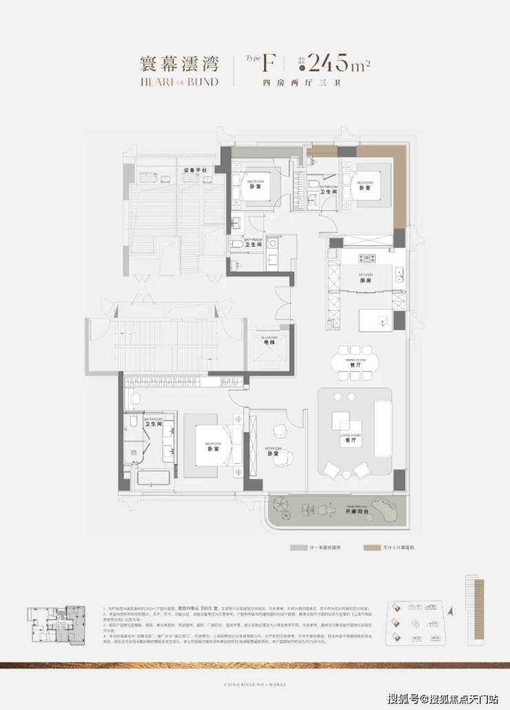 过去10年上海一线滨江住宅,大户型是绝对主流,120㎡级3房产品从未出现。澐启滨江是因2021年后滩九宫格有中小套型指标要求,得以推出120㎡级产品。