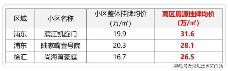 · 陆家嘴壹号院整体挂牌均价20.3万/㎡,高区江景房却要28.1万/㎡;
