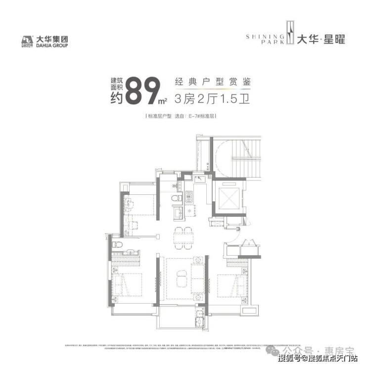 所以虽然是约89㎡的紧凑型3房,但这个户型还是有空间做了一个1.5卫的设计,保证了主人的私密空间,也避免了早高峰用厕的尴尬。