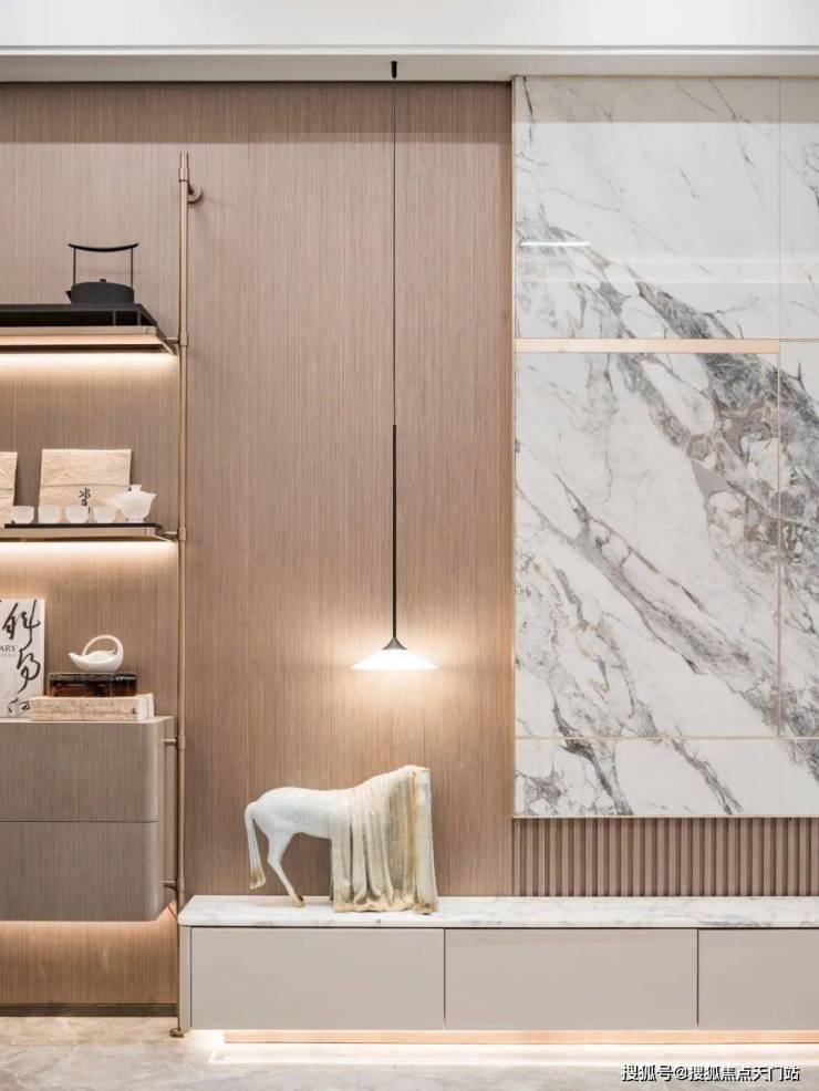 这其中也隐藏了诸多细节,比如全景一体化岩板背景墙。