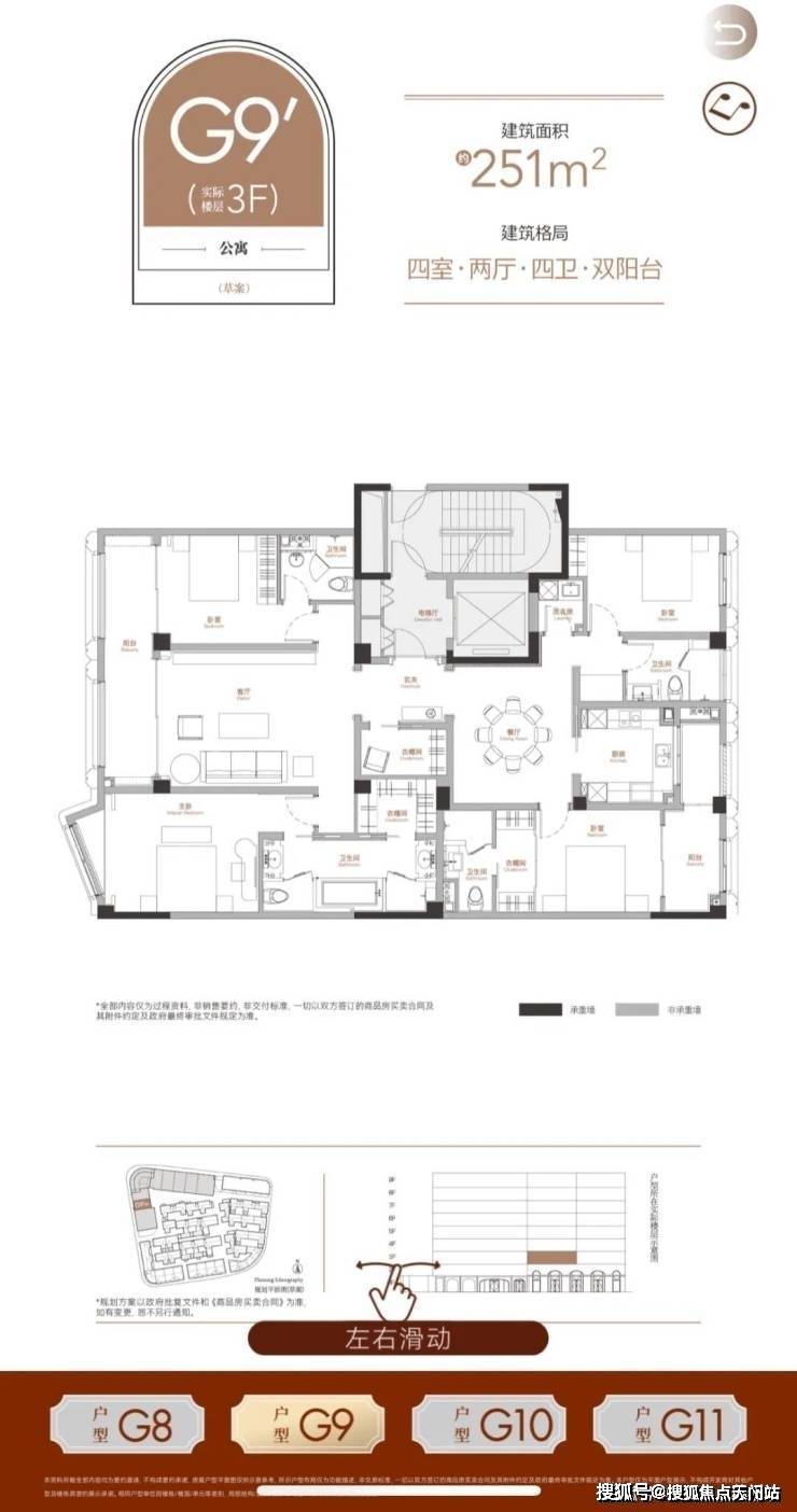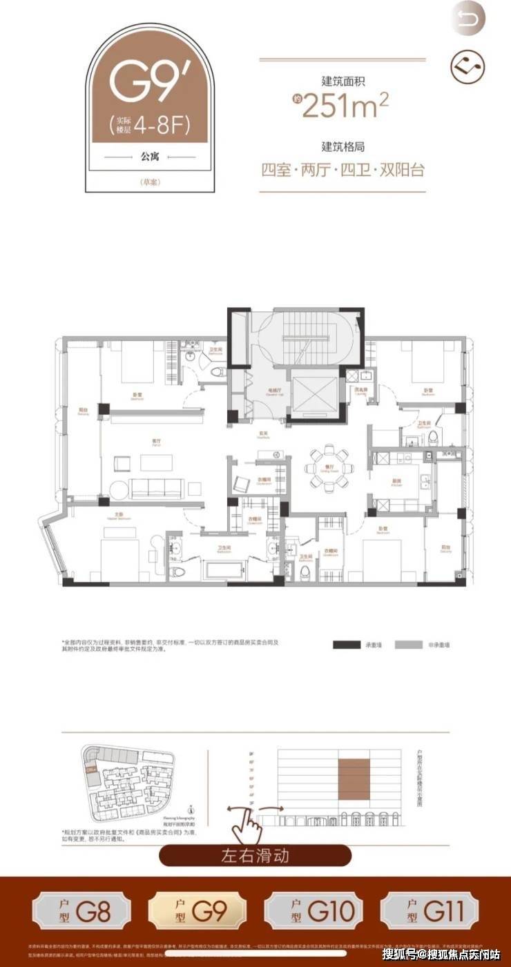 项目的平层户型无论是功能性还是尺度感都足以承载一个大家族的居住需求。十字中轴的布局,方正无比的格局,大开间朝南的设计都极大的保障了每一位家庭成员的私密性和舒适度!