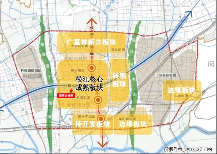我们可以根据松江目前的发展,将它划分为5个不同属性的板块: