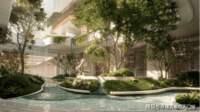 作为杨浦滨江首个新规项目,整体抬高约2米,搭配 下沉式庭院与 立体景观,有效提升采光、通风与私密性,隔绝外部噪音干扰;