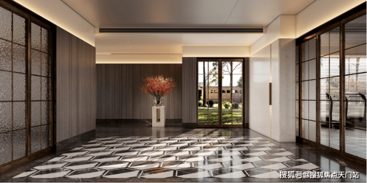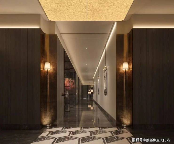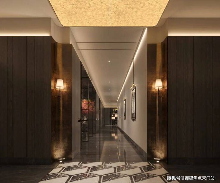 一梯一户与归家礼仪:通过错位设计实现实质的一梯一户,电梯厅成为私享空间。入户玄关采用奢石与水刀拼花工艺,营造出强烈的归家仪式感和尊贵体验。