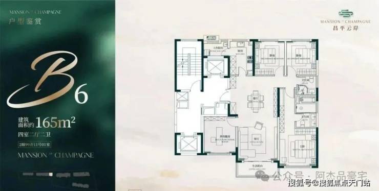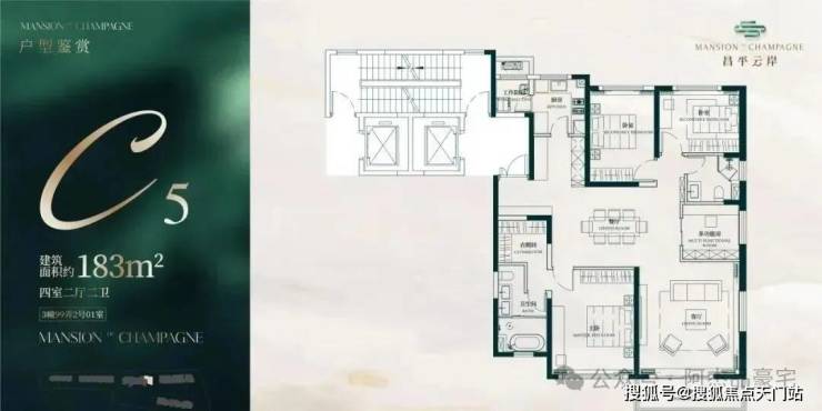 此户型最靠近苏州河,特地设计了 270度转角阳台 直面苏河一线景观!4个套房设计,尊崇感十足!此户型仅有6套,珍藏属性拉满!